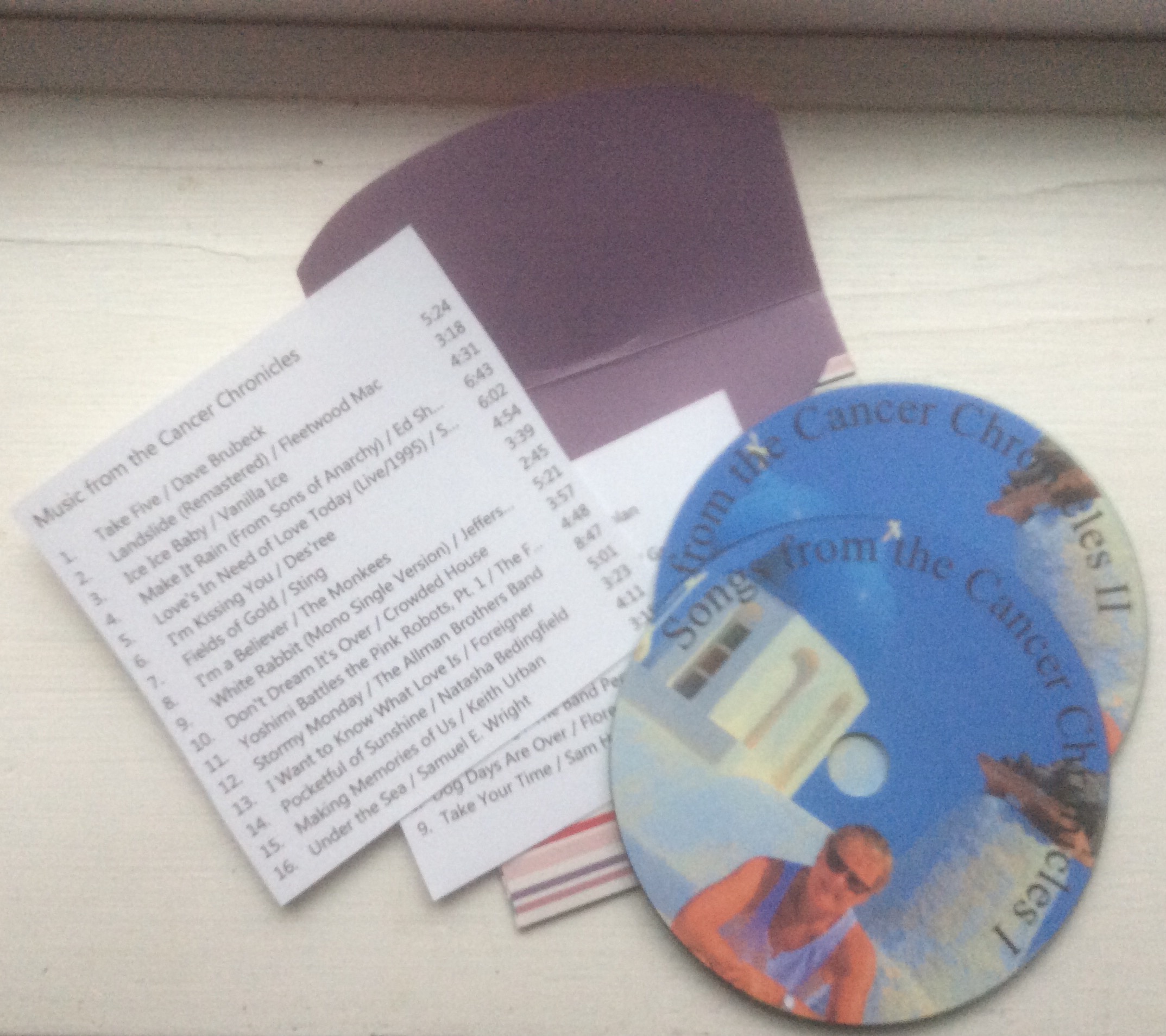 You are the person who took the time, a lot of time, to cull all of my songs out of The Cancer Chronicles and burn them onto CDs with my logo and song list. That took super effort and time. You are so creative and generous and kind. We can get through this together.image