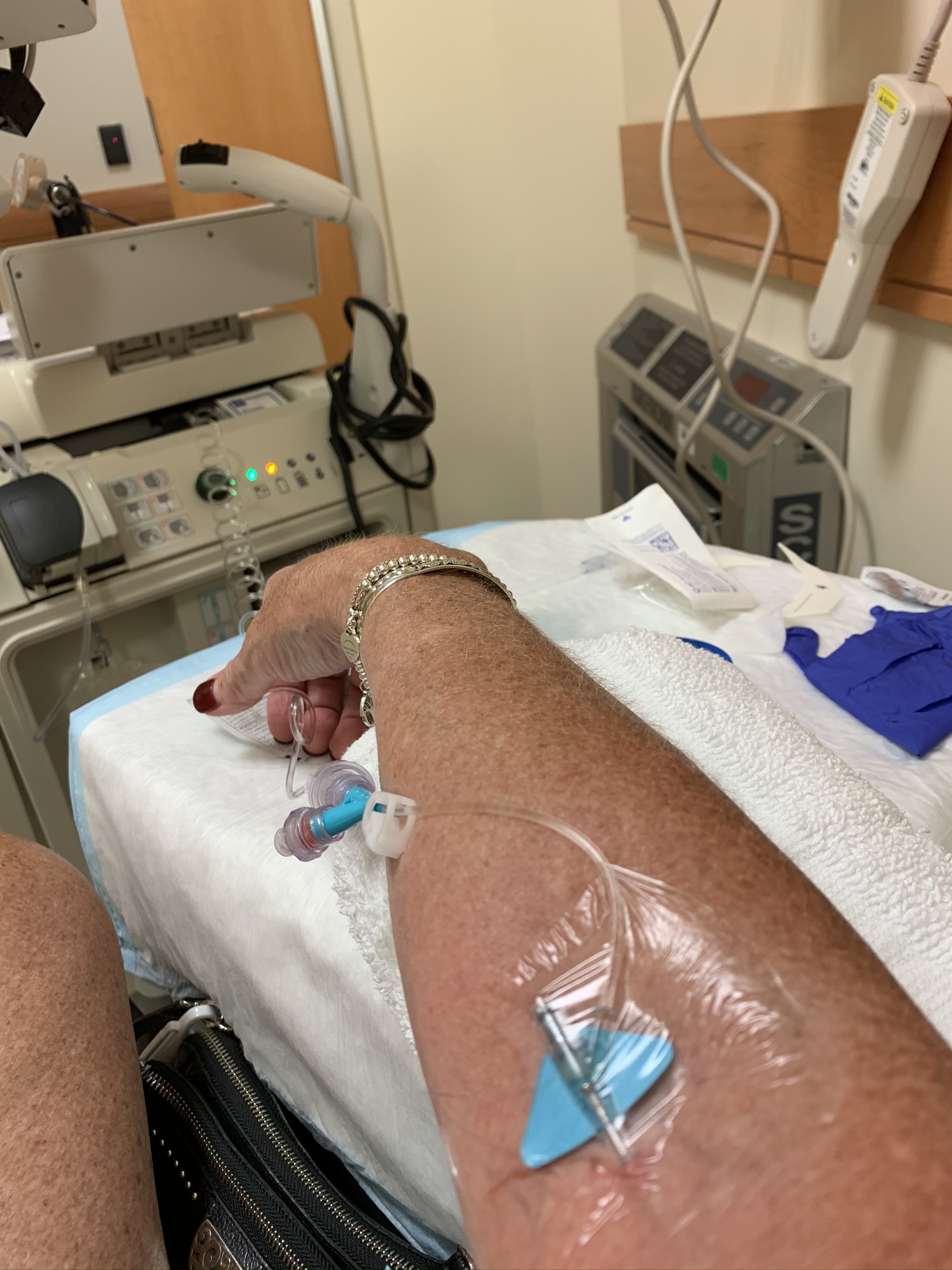 I huddled with Tim when I got home and that night and Tuesday were a blur. He is uncomfortable and in pain still. Definitely not bouncing back. The decision was made that he would not be accompanying me to Cancerland on Wednesday for the first time in six months (I had been doing telehealth calls with my oncologist). Once again, Bridget to the rescue. She dropped me at the door of Dana Farber and it was like entering a whole new world.