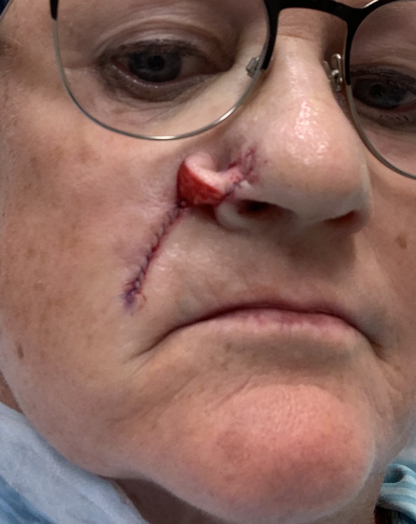 Tim woke me up very early Sunday complaining of stomach pain. By 8:30 I had dropped him off at the ER of our local hospital. He never complains so this was serious. Yup, it was appendicitis in the middle of a pandemic when he had to go it alone. I spent anxious hours by the phone until the doctor was out of surgery. Little coconut came to bring me dinner, stay the night and bring me to Faulkner Hospital for Moh’s surgery that I had been waiting over a month for. Tim’s surgery the night before went well and I arranged for Kelsey to pick him up on discharge and bring him home while I was off in Boston. Yup, it was skin cancer and deeper than expected–this resulted in the need for reconstruction of my nose. I was not mentally prepared for that. After a long process I left with skin from my cheek cut out and attached to my nose in an open flap, heavily bandaged. Two more appointments will happen to complete the process and I should look ok in about 6 months!? What? Yup. Not pleasant. Stay out of the sun kids and wear sun block every day.